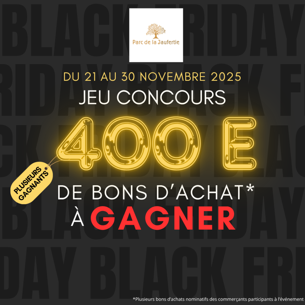 Pour le Black Friday du Parc de la Jaufertie, c’est Noël avant l’heure, l’ensemble des commerçants vous gâtent et vous proposent de gagner des bons d’achat surprises dans les boutiques participantes.