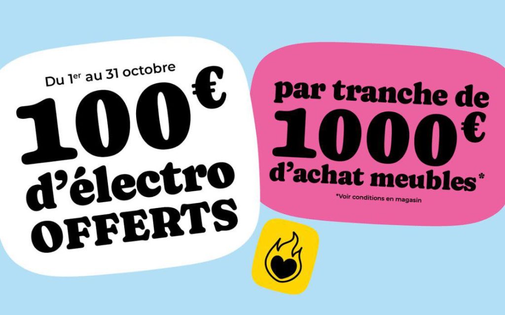 En Octobre, chez SoCooâc bĂ©nĂ©ficiez de 100⏠dâĂ©lectros offert par tranche de 1000⏠dâachat meubles.*