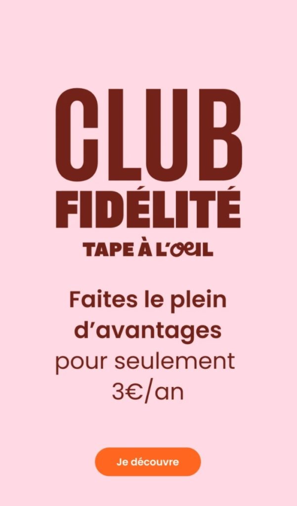 jusqu’au 25 février dans votre magasin Tape à l’oeil pour un article acheté : le deuxième est à -50%