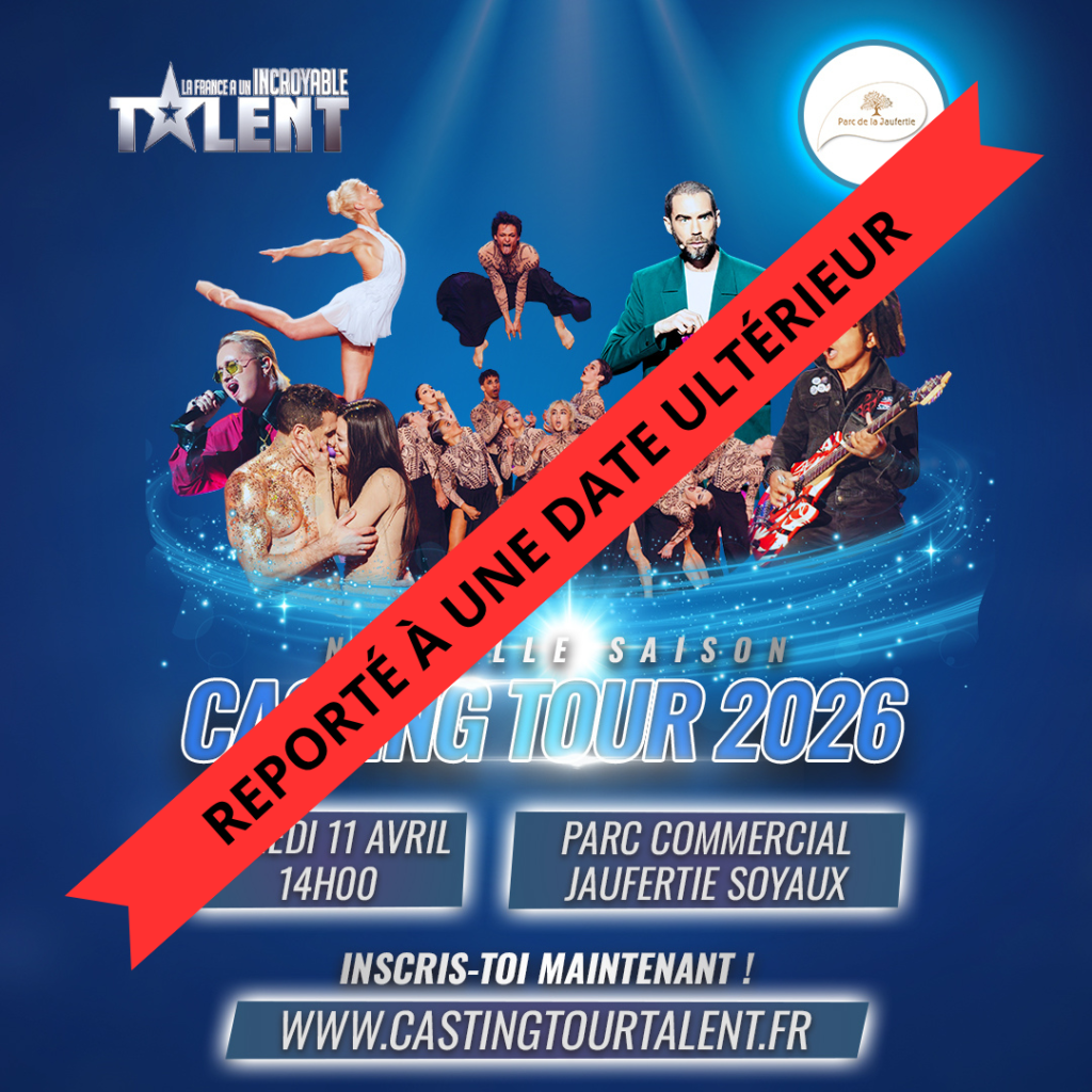 En raison d’un événement indépendant de notre volonté, le casting pour La France a un incroyable talent au Parc de la Jaufertie est reporté à une date communiquée dés que possible.